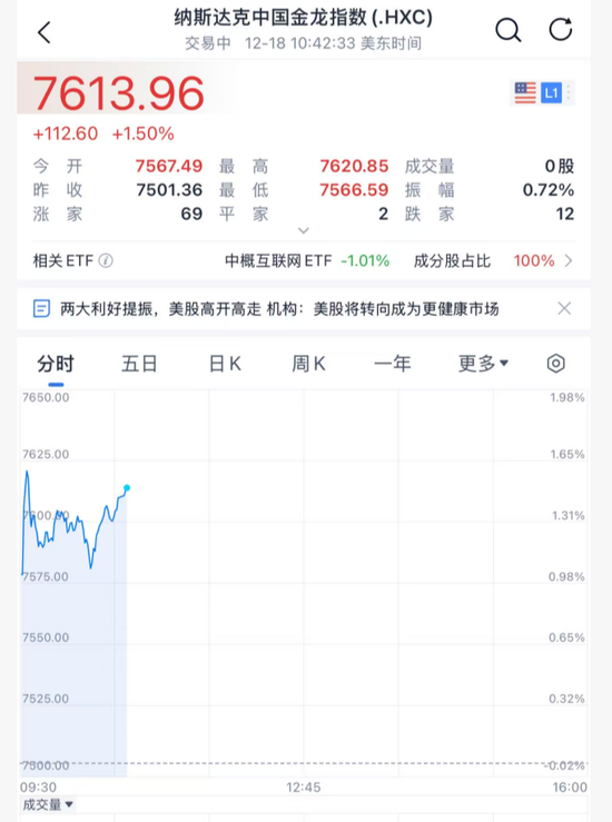 12月19日晚间,美股三大指数高开高走,道指涨超400点,纳斯达克涨近2%,标普500指数涨超1%。